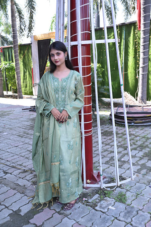 Paired with a matching embroidered dupatta, this ensemble is perfect for festive occasions, weddings, or sophisticated gatherings, marrying heritage artistry with contemporary grace. 🌿
